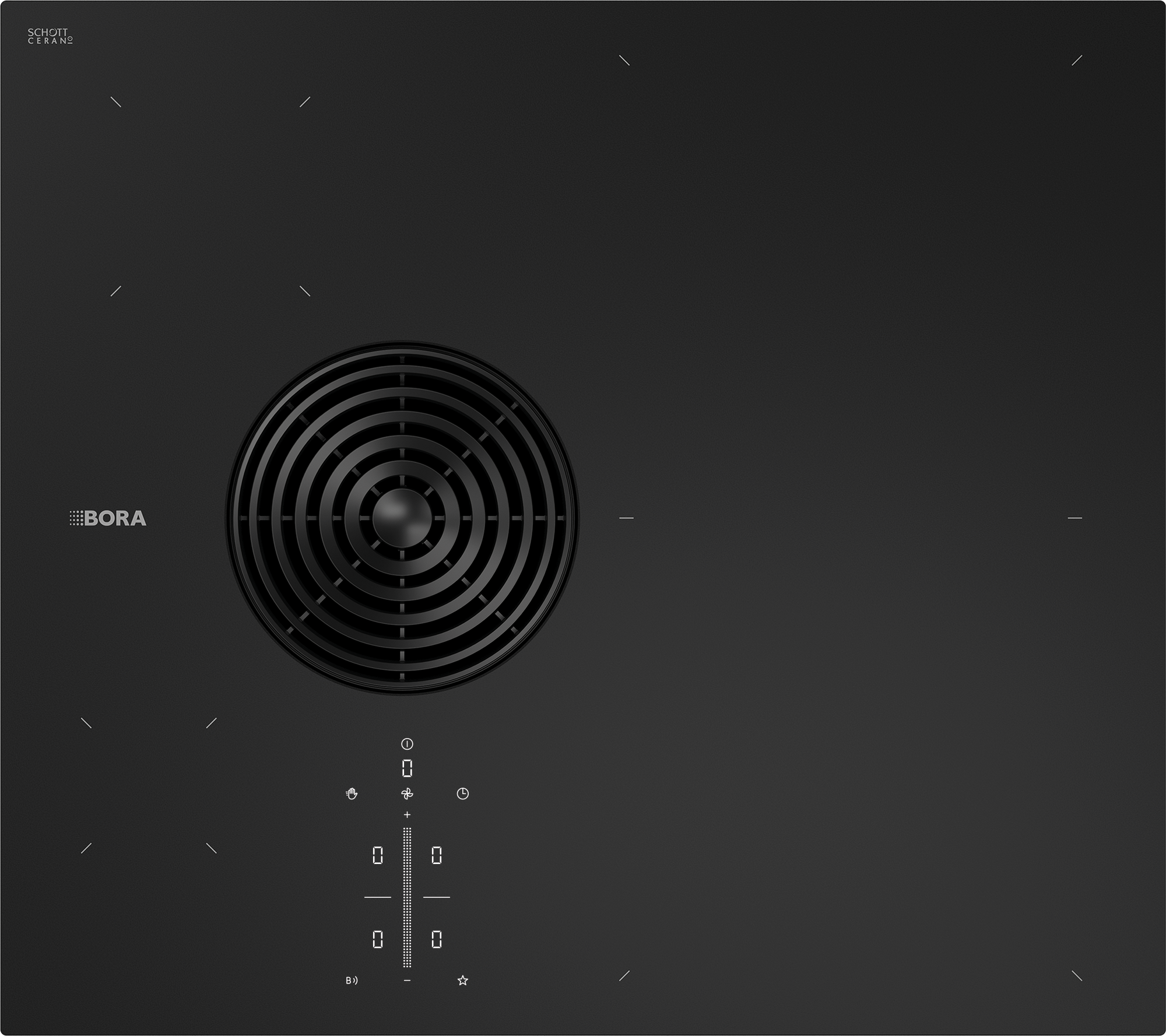 Med sine mål på 580 mm x 515 mm er BORA S Pure Rough den minste modellen i Pure-serien og den ideelle løsningen for kjøkkenskrog på 60 cm. Den har to runde kokesoner og to fleksible kokesoner som kan kobles sammen. Den smarte utformingen gjør at hele koketoppen utnyttes optimalt, samtidig som den lave høyden sikrer verdifull skuffeplass under benken.